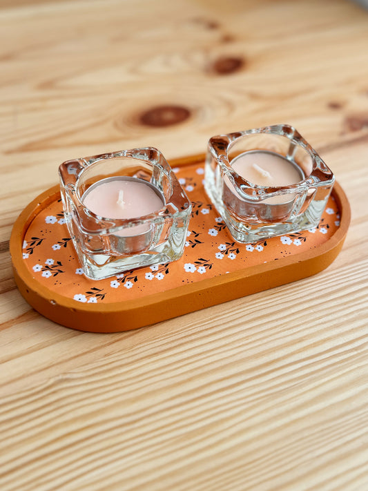 סט נרות ומגש מעוצב - ניחוח הדרים